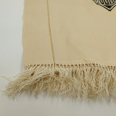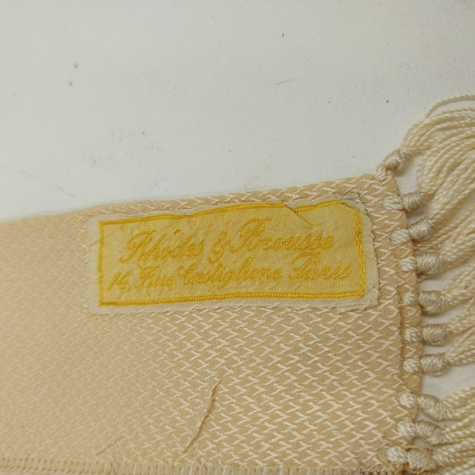 Rhodes & Brousse Paris Beige Scarf 13"x54" Silk Blend Fringe KMA Monogram VTG