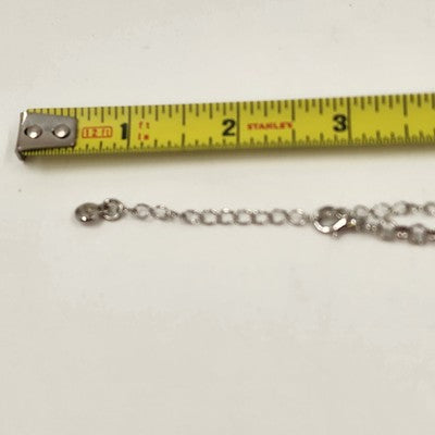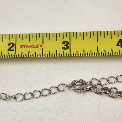 RMN Silver Tone Chain Green Yellow Flowers & Rhinestone Pendant Necklace 10"