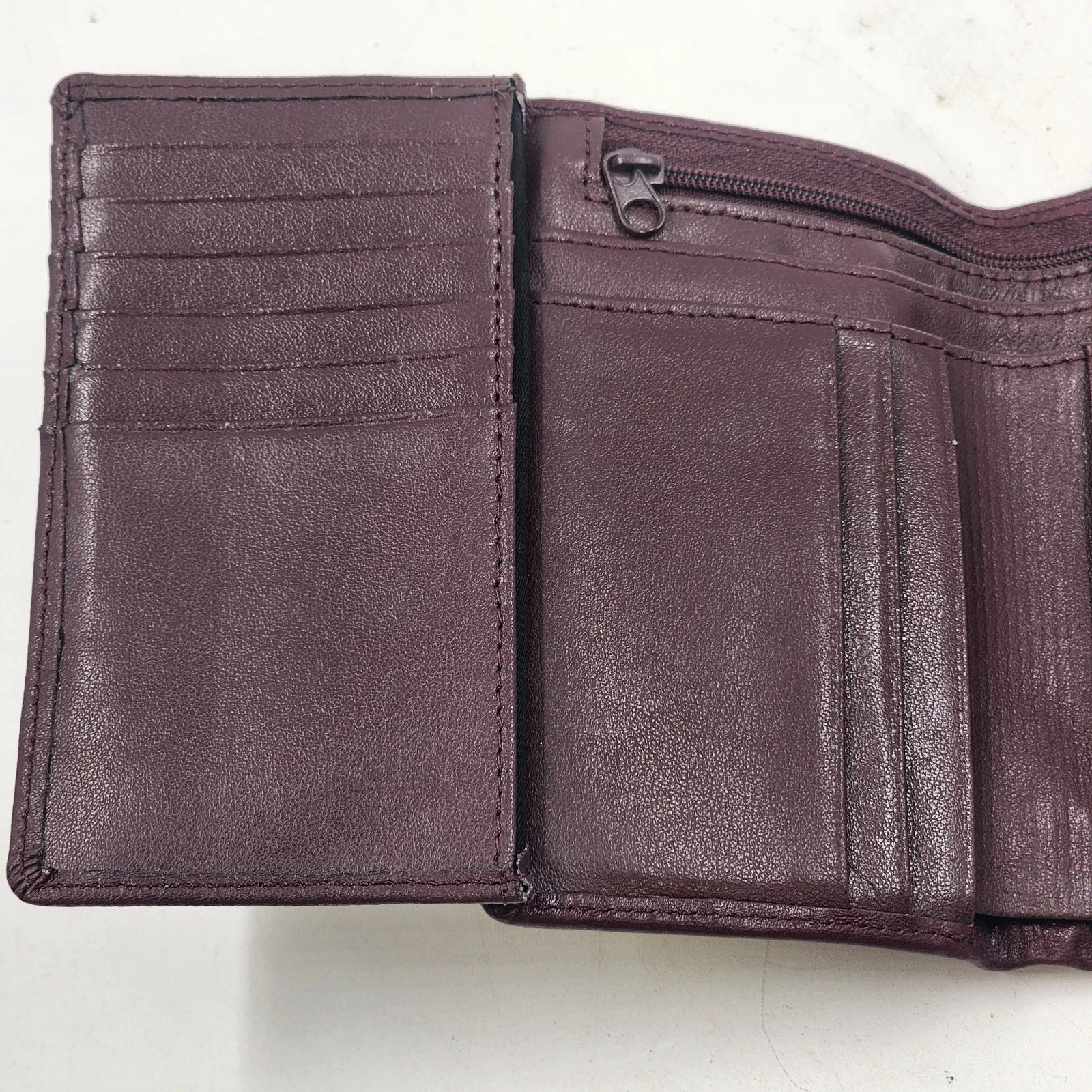The standout feature of this wallet is its expanded storage capacity. While it maintains a compact tri-fold profile, it includes a specialized fourth fold-out section specifically designed to organize and display credit cards, IDs, or loyalty cards efficiently.