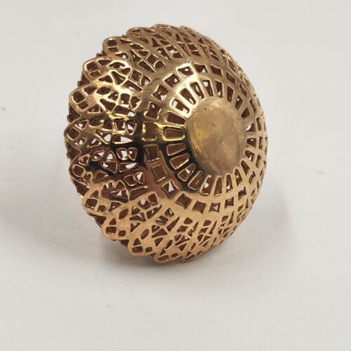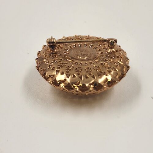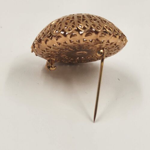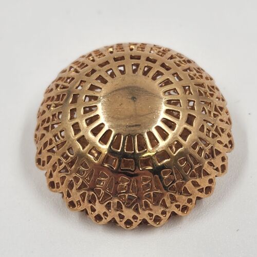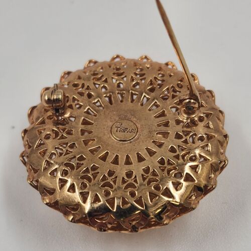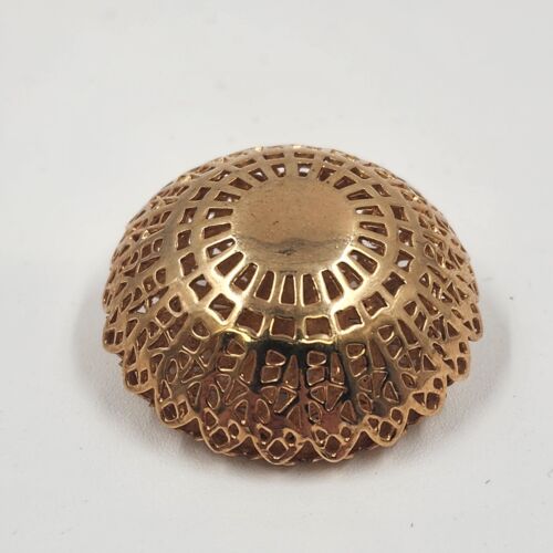 Round Crown Trifari Filagree Domed Gold Tone Pin Vintage Brooch Signed