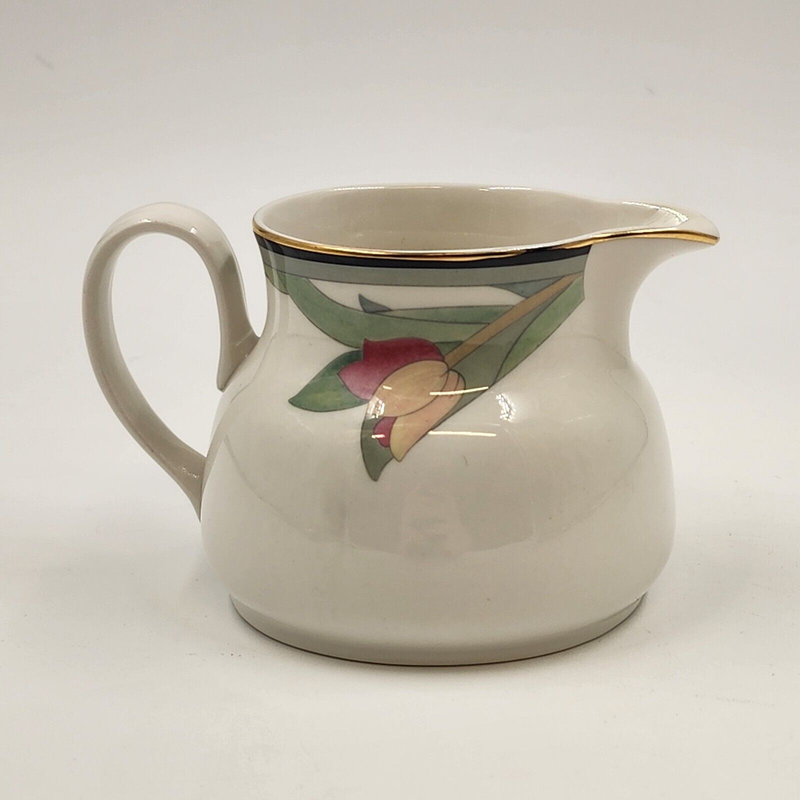 Elevate your dining experience with the Royal Doulton Awakening components from the Vogue Collection, a testament to classic English craftsmanship. Crafted in 1985, this exquisite porcelain dinnerware features a serene white base beautifully complemented by intricate green floral designs plus a gold and black rim, embodying the timeless elegance of the late 20th century. Ideal for various occasions, the set includes a range of components that cater to both beauty and functionality. Each piece boasts a glossy finish and is machine washable, ensuring ease of care. With its printed backstamp authenticating each item, this collection is a limited-edition treasure, offering a touch of sophistication to any table setting.