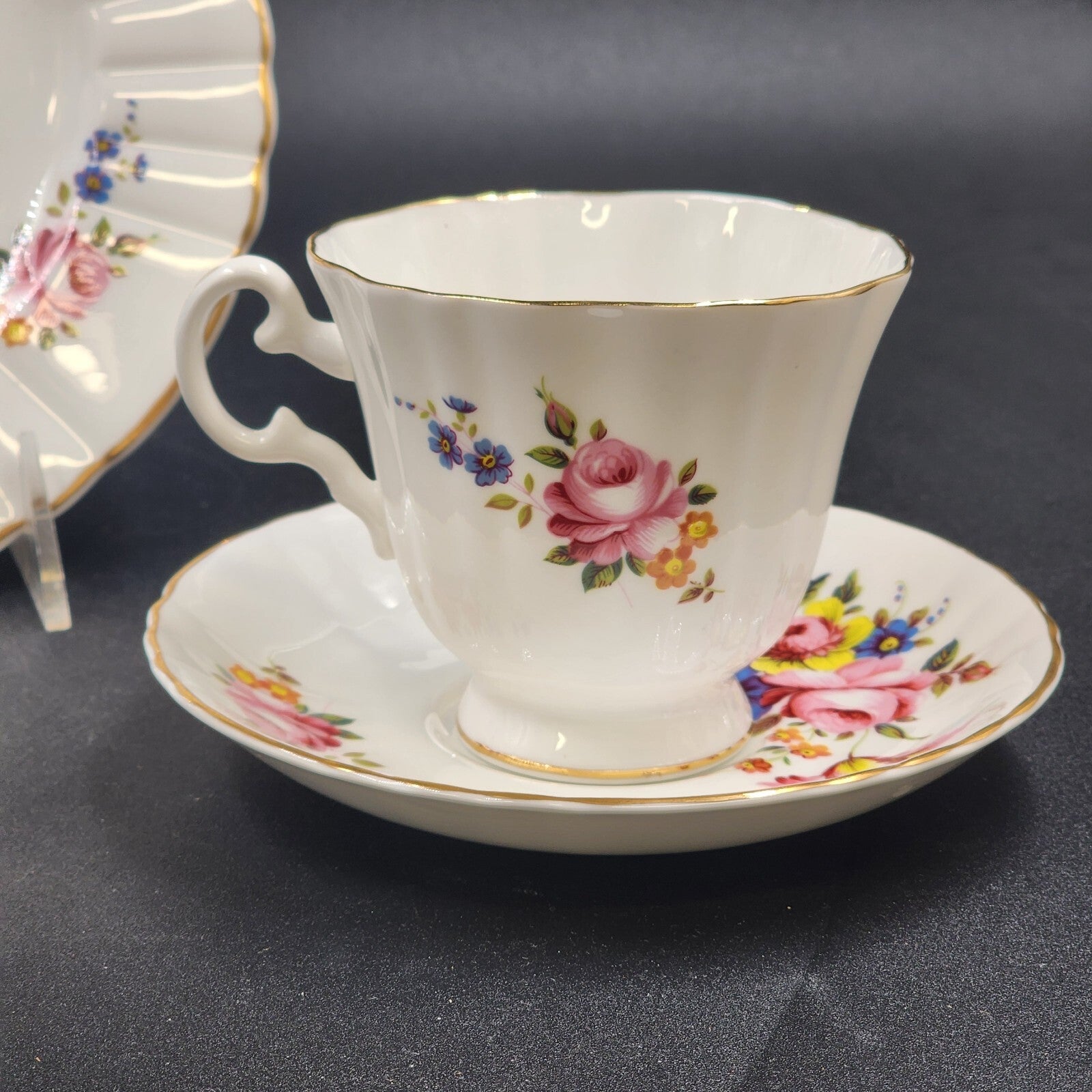 Royal Grafton Fine Bone China Rose Floral w Gold Edge Tea Cup Saucer Salad Plate