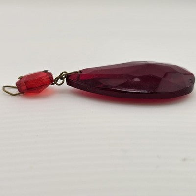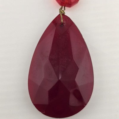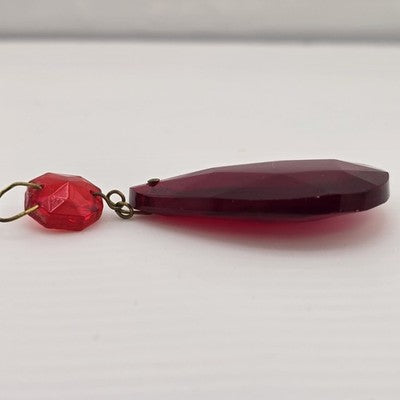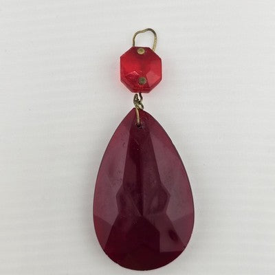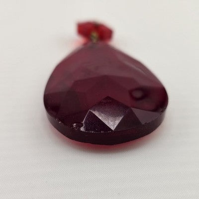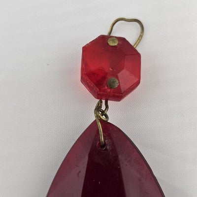 Ruby Red Faceted Teardrop & Button Crystal Prisms Hanging Chandelier Parts 2"