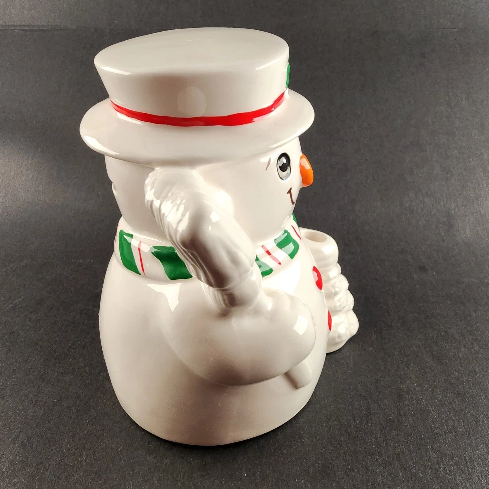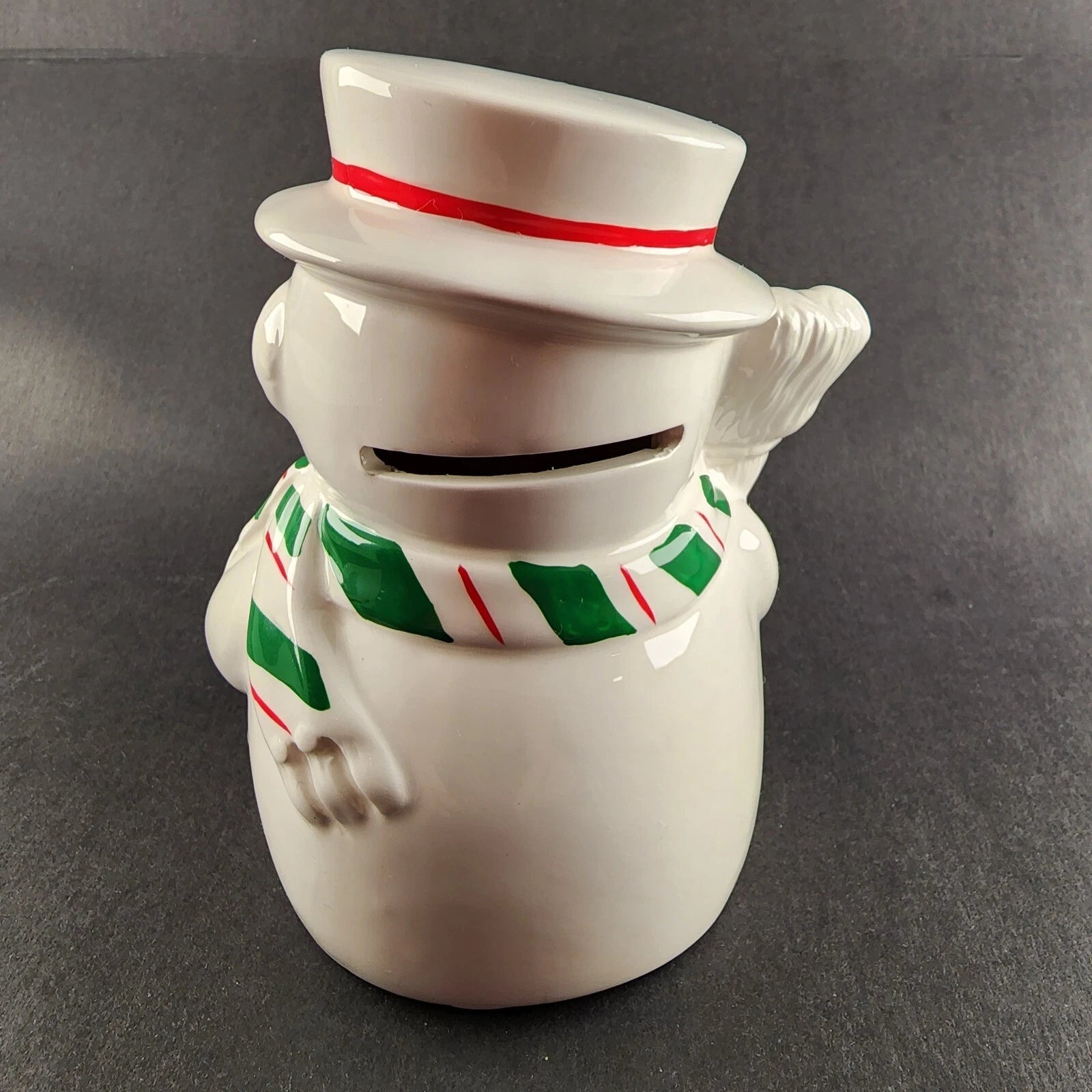 Charming vintage 1980s Russ Berrie ceramic snowman coin bank - a festive collectible perfect for holiday décor or as a gift!