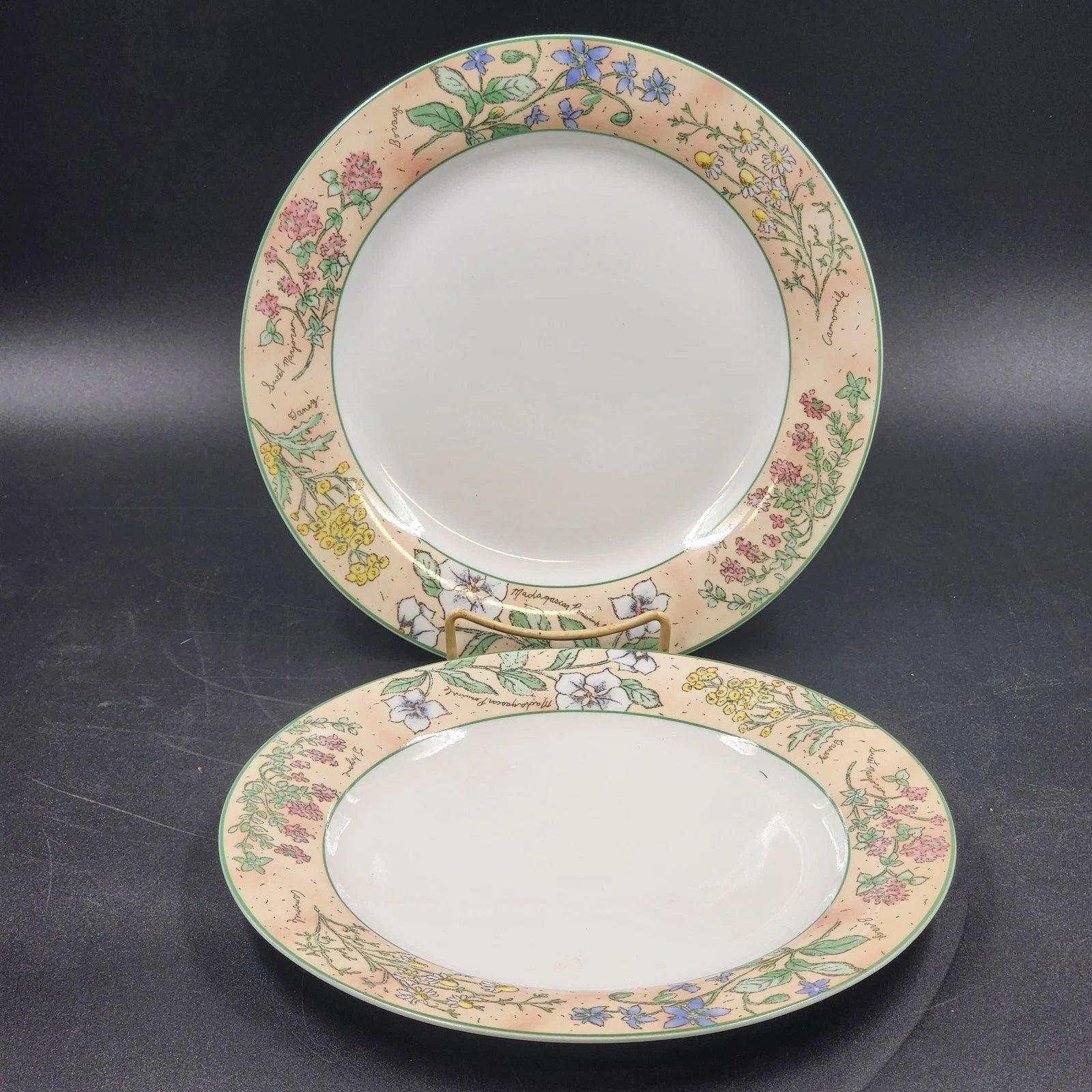 Sakura Sachet Dinner Plates 10.5" Set of 2 Sue Zipkin Herbs Floral 1996 Vintage