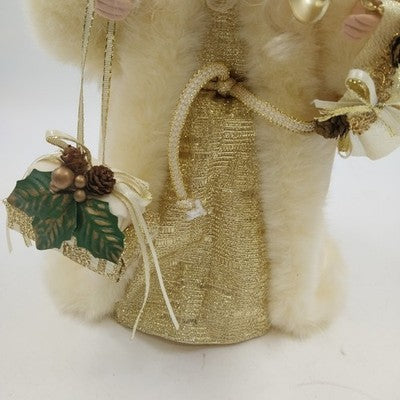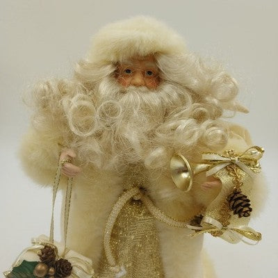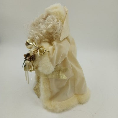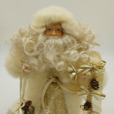 Elegant Santa Claus Christmas tree topper in a beautiful ivory and gold design, crafted by Holiday Workshop in China. Standing 12 inches tall, this festive piece features rich detailing, perfect for adding a touch of classic holiday charm to your Christmas tree décor.