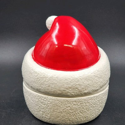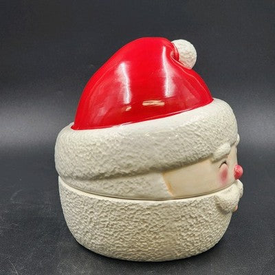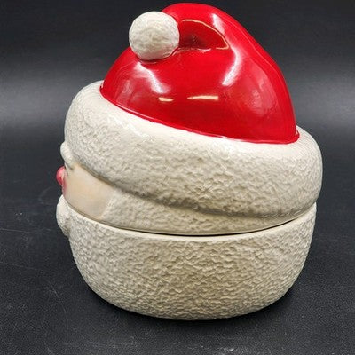 Santa Claus Head Smiley Face Ceramic Christmas Cookie Jar Canister 7.25" Tall