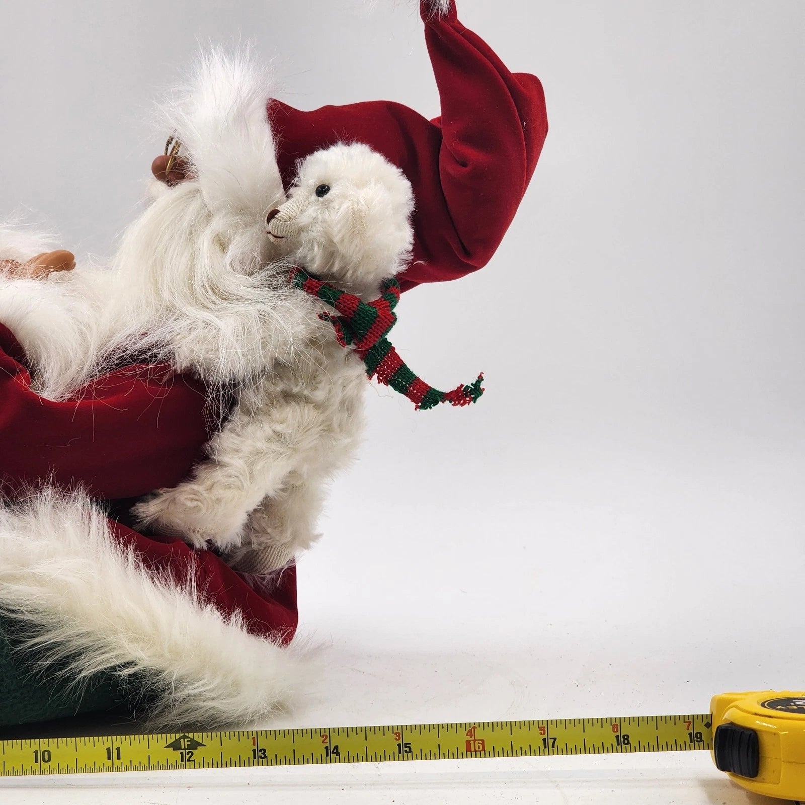 Santa Shelf Sitter Figurine with Puppy on his Shoulder Vest & Coat w Sweatpants