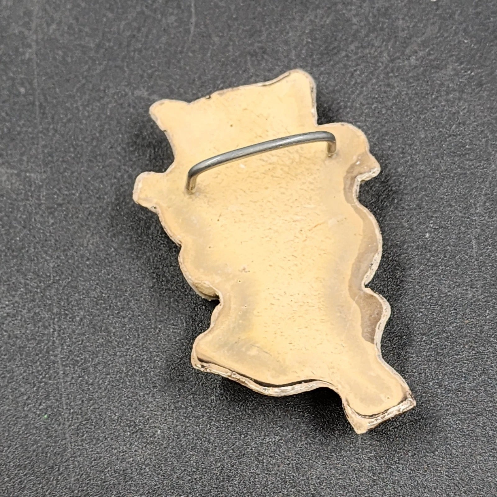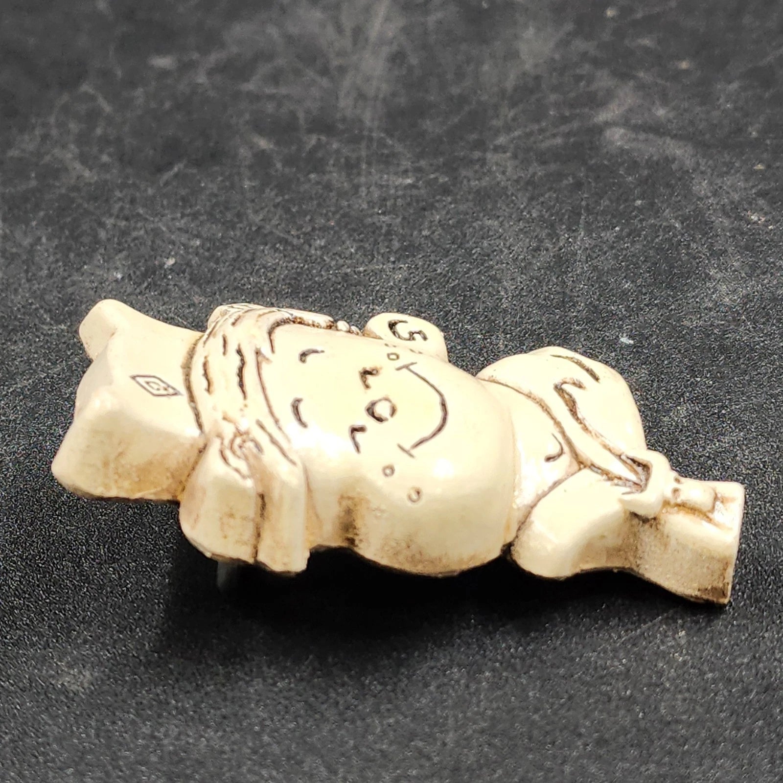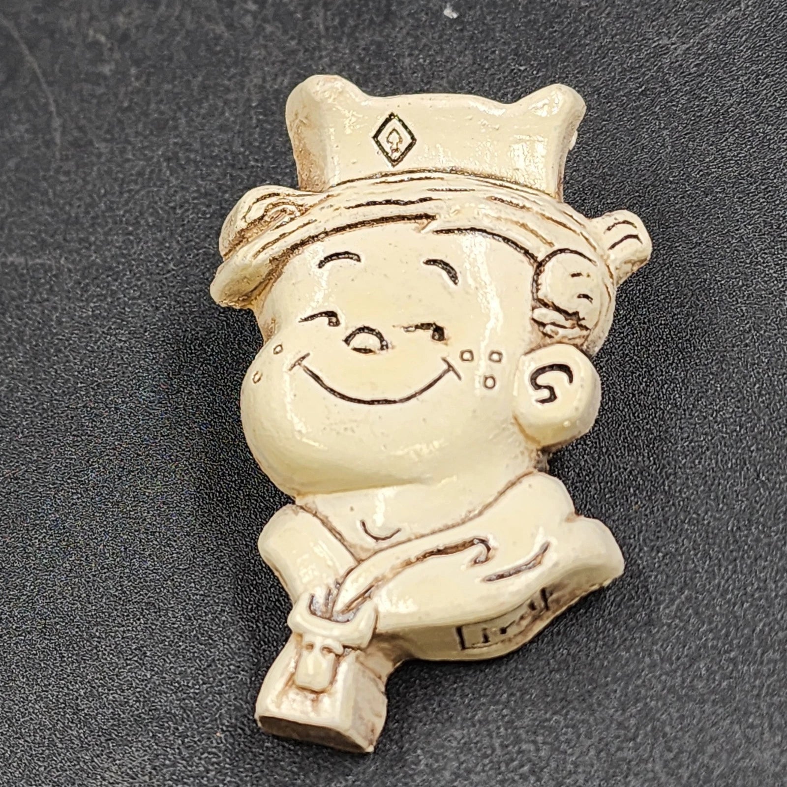 Unlike modern plastic slides, this vintage version is crafted from a sturdy ceramic/clay material with the metal attachment loop securely "baked in" for durability. It is a wonderful piece of Americana that bridges the gap between the golden age of newspaper comics and the rich history of the Boy Scouts of America.