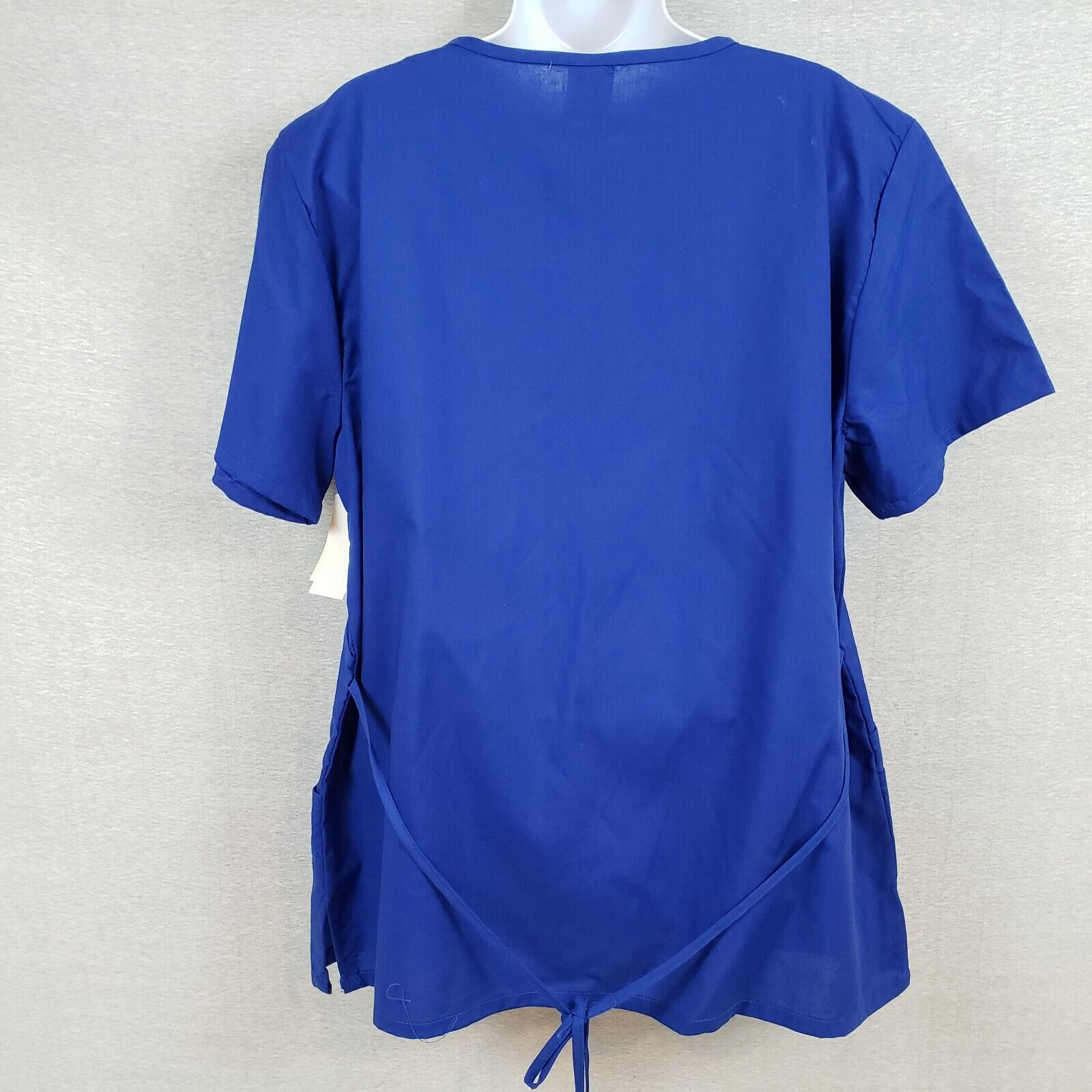 Scrubs Brand Medical Scrub Top Blue Solid Size 1XL 3 Front Pockets Tie Back