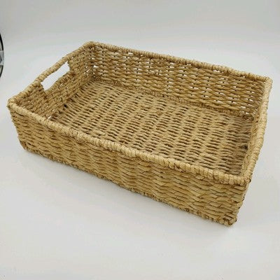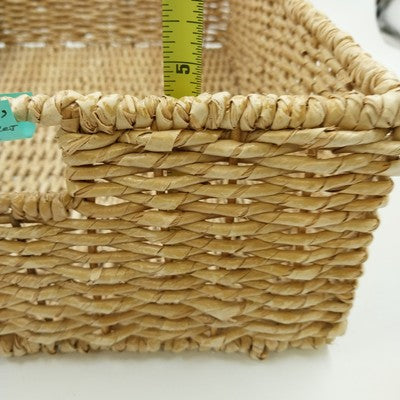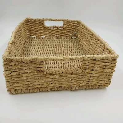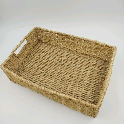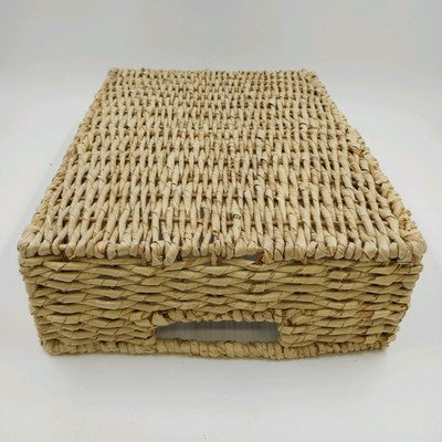 This medium-sized rectangular storage basket is a perfect blend of practicality and aesthetic appeal. Handwoven from natural seagrass over a durable metal frame, it features sturdy handles for easy transport. Ideal for organizing household items while adding a rustic touch to your decor.