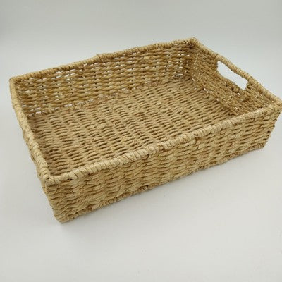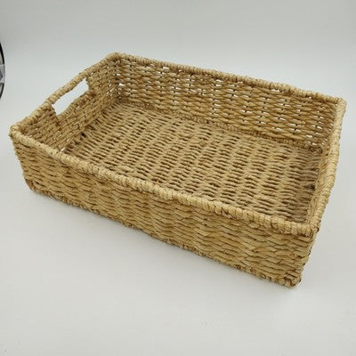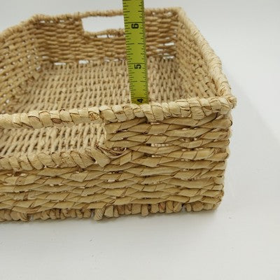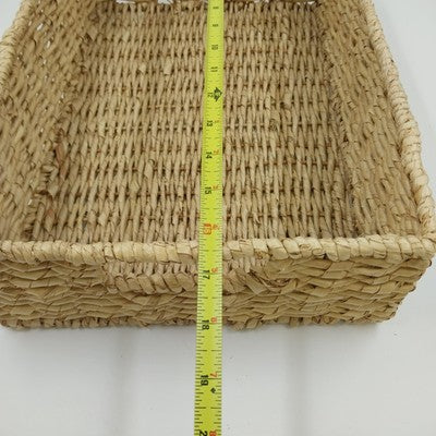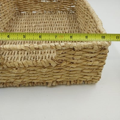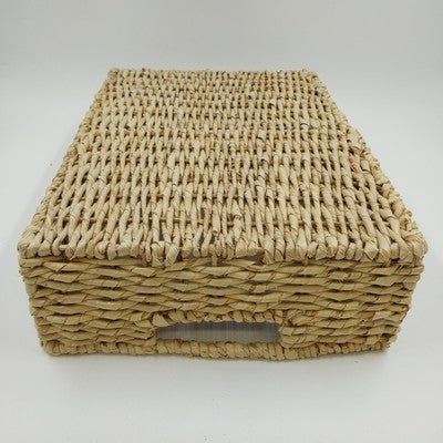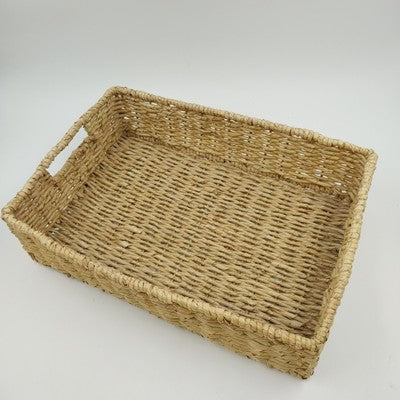 This medium-sized rectangular storage basket combines functionality and style, featuring handwoven natural seagrass over a sturdy metal frame. Its integrated handles ensure easy carrying, making it perfect for organizing your home or office space with a rustic charm.