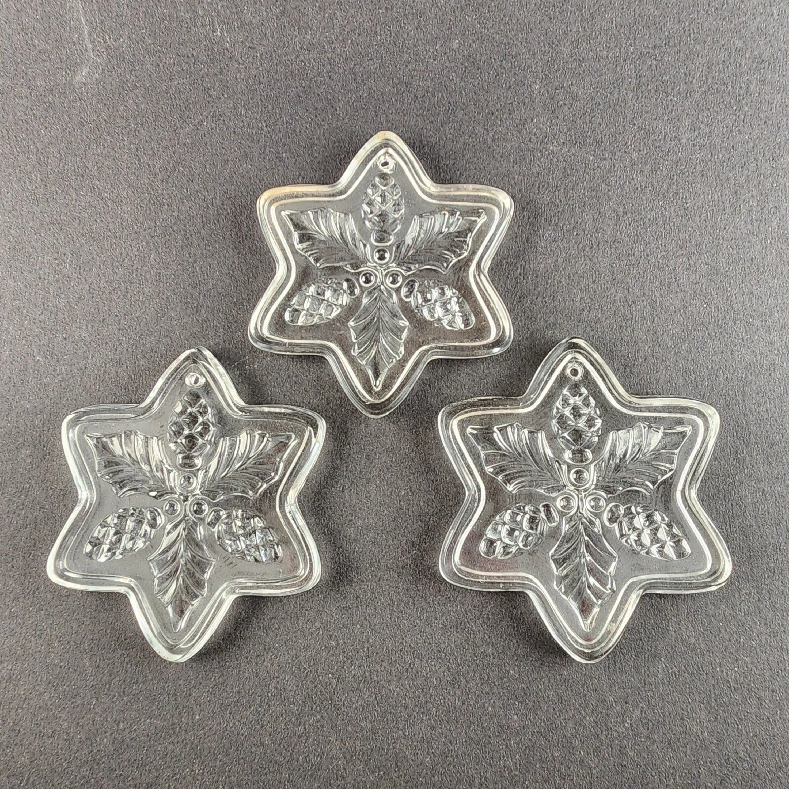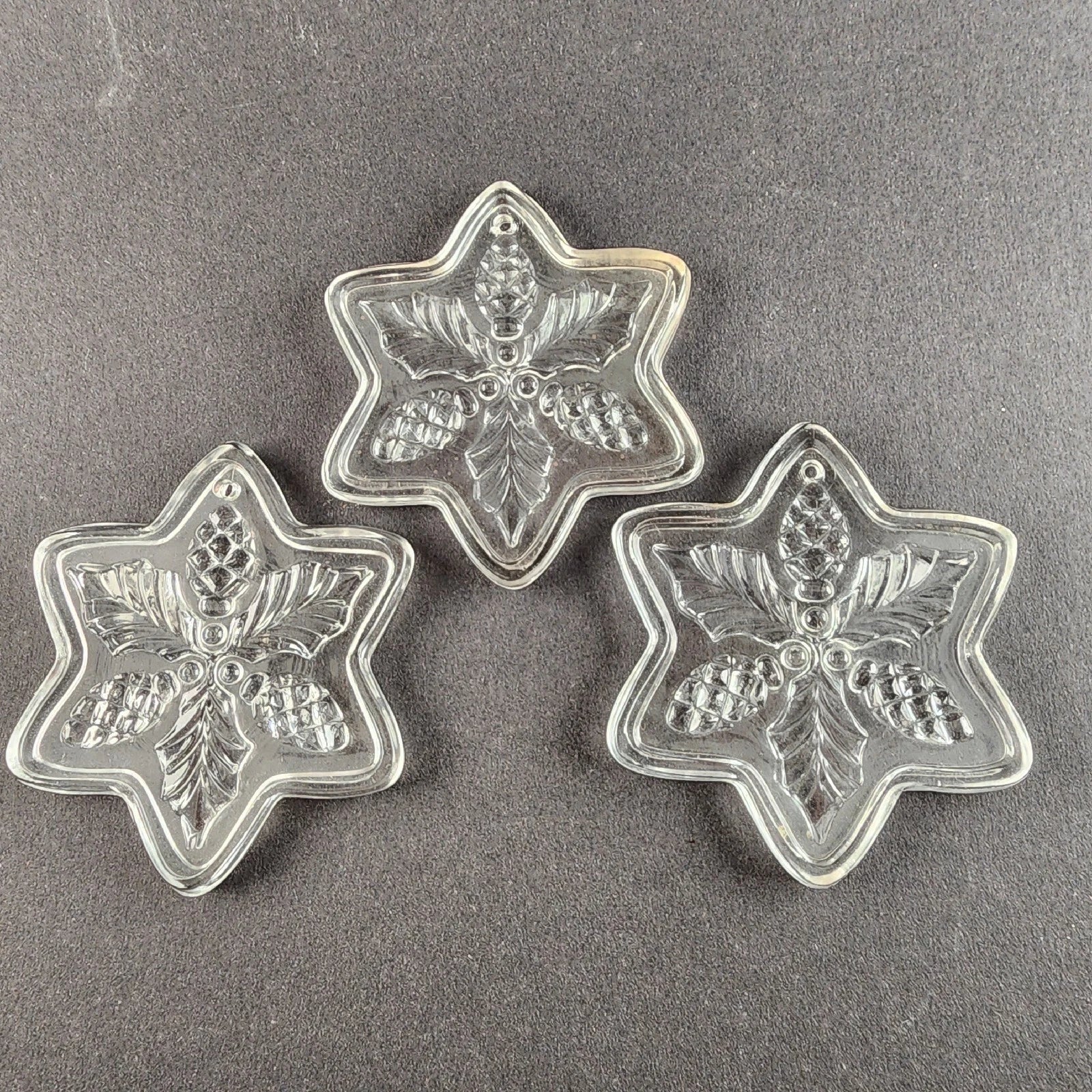 Set 3 Fostoria Lead Crystal True Holly Christmas Ornaments 3.5" Clear Glass