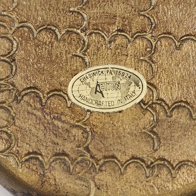 Add a touch of sophistication to your table setting with this set of 3 handcrafted Italian toleware coasters. Featuring a stunning design in gold, burnt umber, and pale blue, these coasters are as functional as they are decorative.