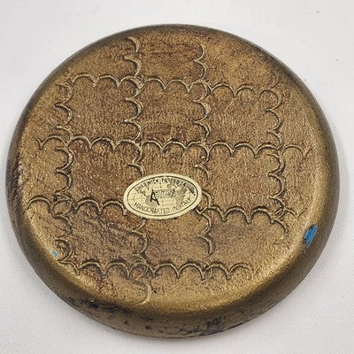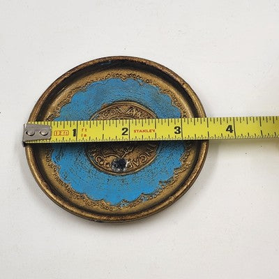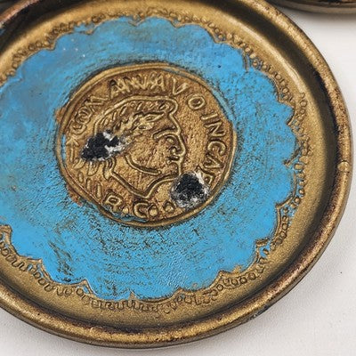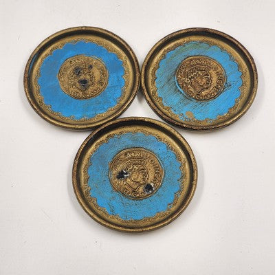 Set of 3 Italian Toleware Coasters Gold Burnt Umber Pale Blue Handcrafted Italy 3.5"