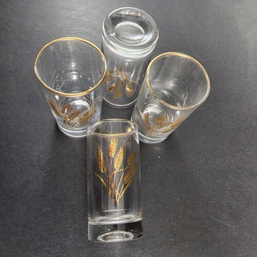 Set 4 Homer Laughlin Golden Wheat Tumblers 4 ounce Heavy Bottom Glasses 4" x 2"