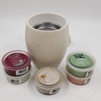 Set of 5 Wax Warmer Yankee Candle with Timer & White Scenterpiece Easy Meltcups