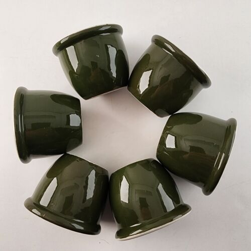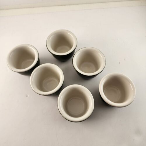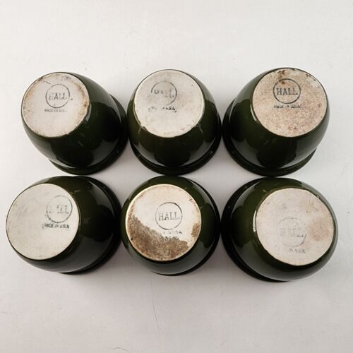 Set 6 Hall Pottery Green White Custard Cups Ramekin Dessert Restaurant