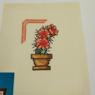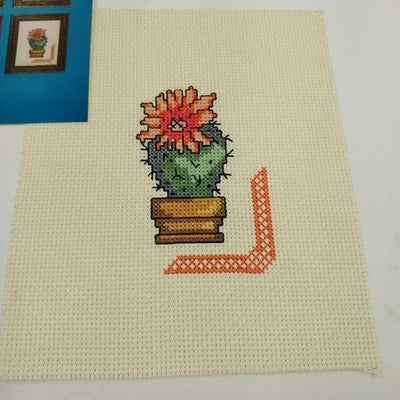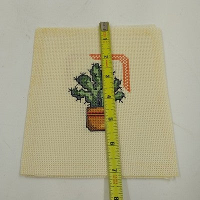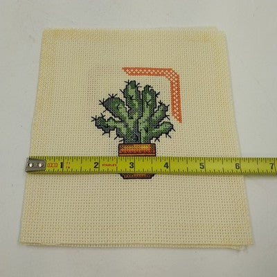 Set of 4 Completed Cross Stitch Desert Mini Vase Plants 6x7" Aida Cloth Unframed