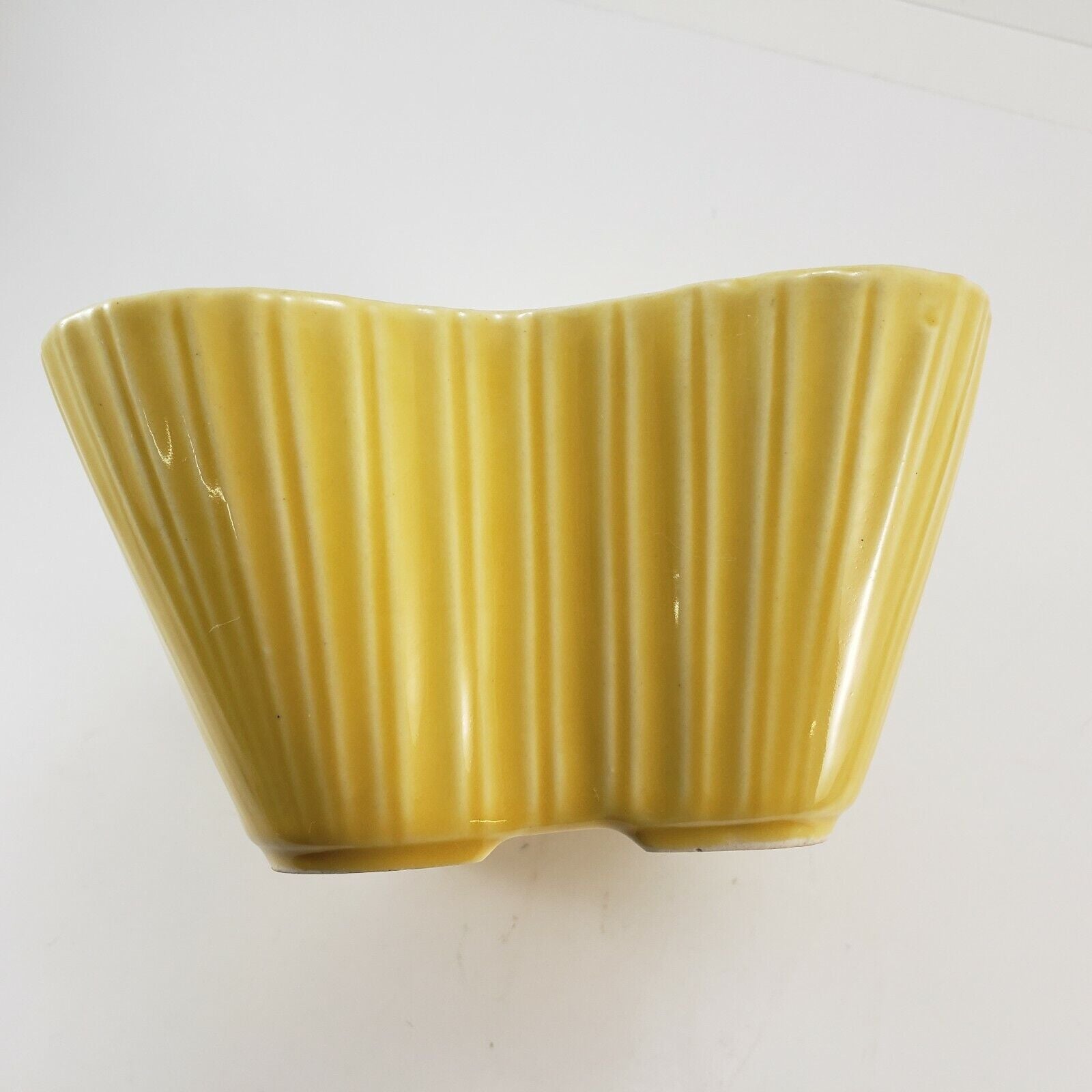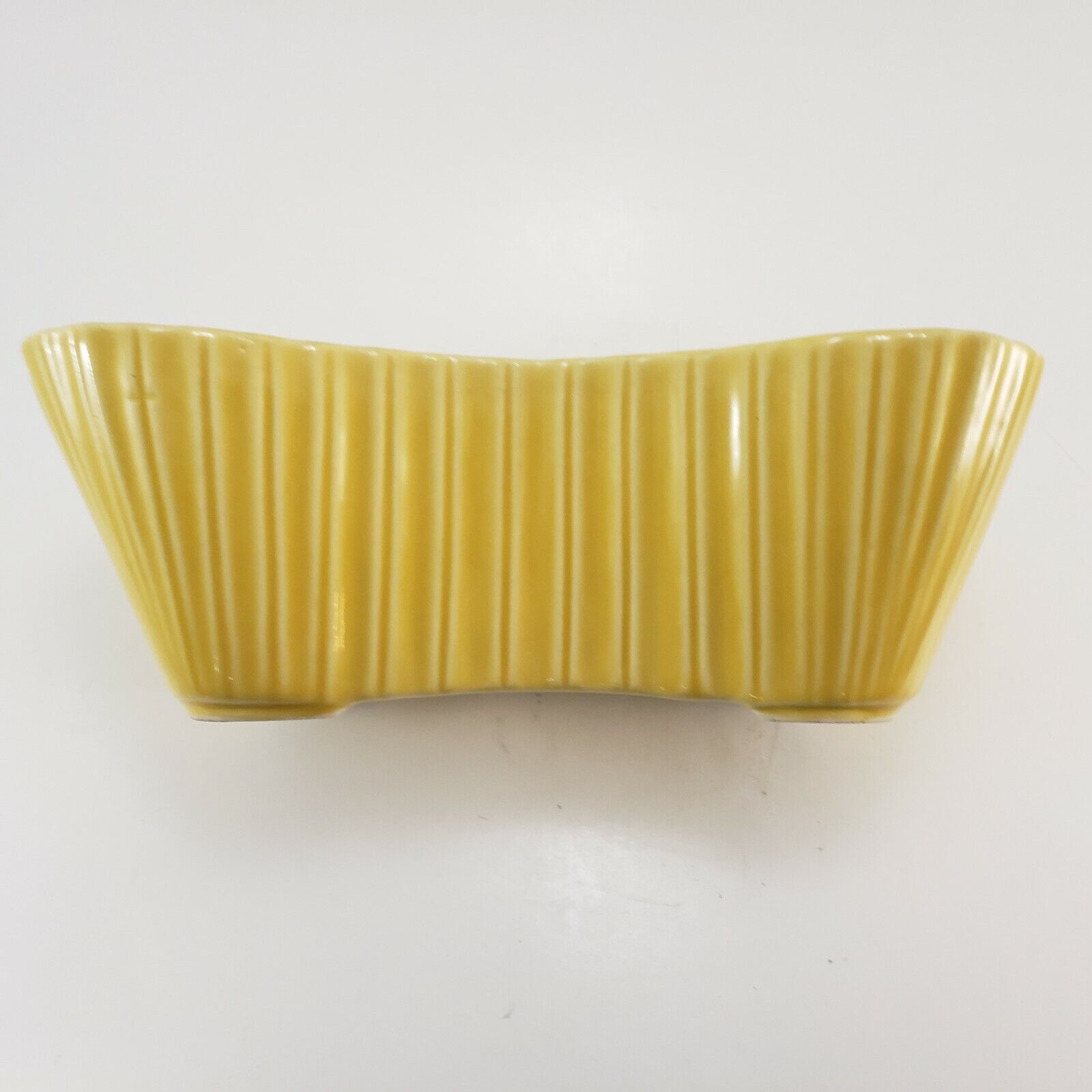Shawnee Yellow Dog Bone Planter Art Pottery with Ribbed Sides USA 153 9.5 x 6"