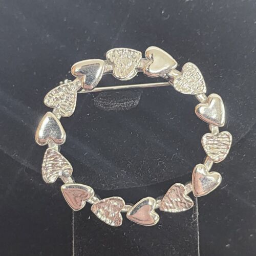 Signed GERRY'S Heart Circle Brooch Silver Tone 1.25" Diameter Vintage