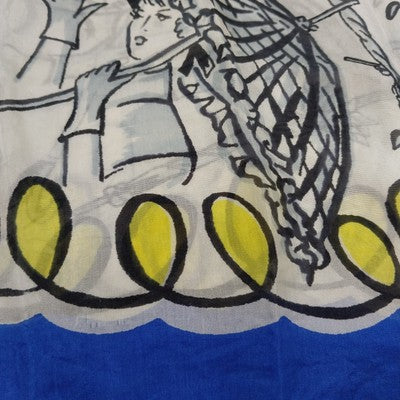 Silk Square Scarf 32" Lady with Umbrella in Rain Design Blue Border VTG