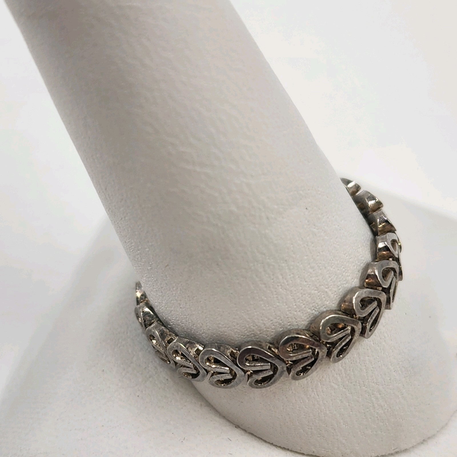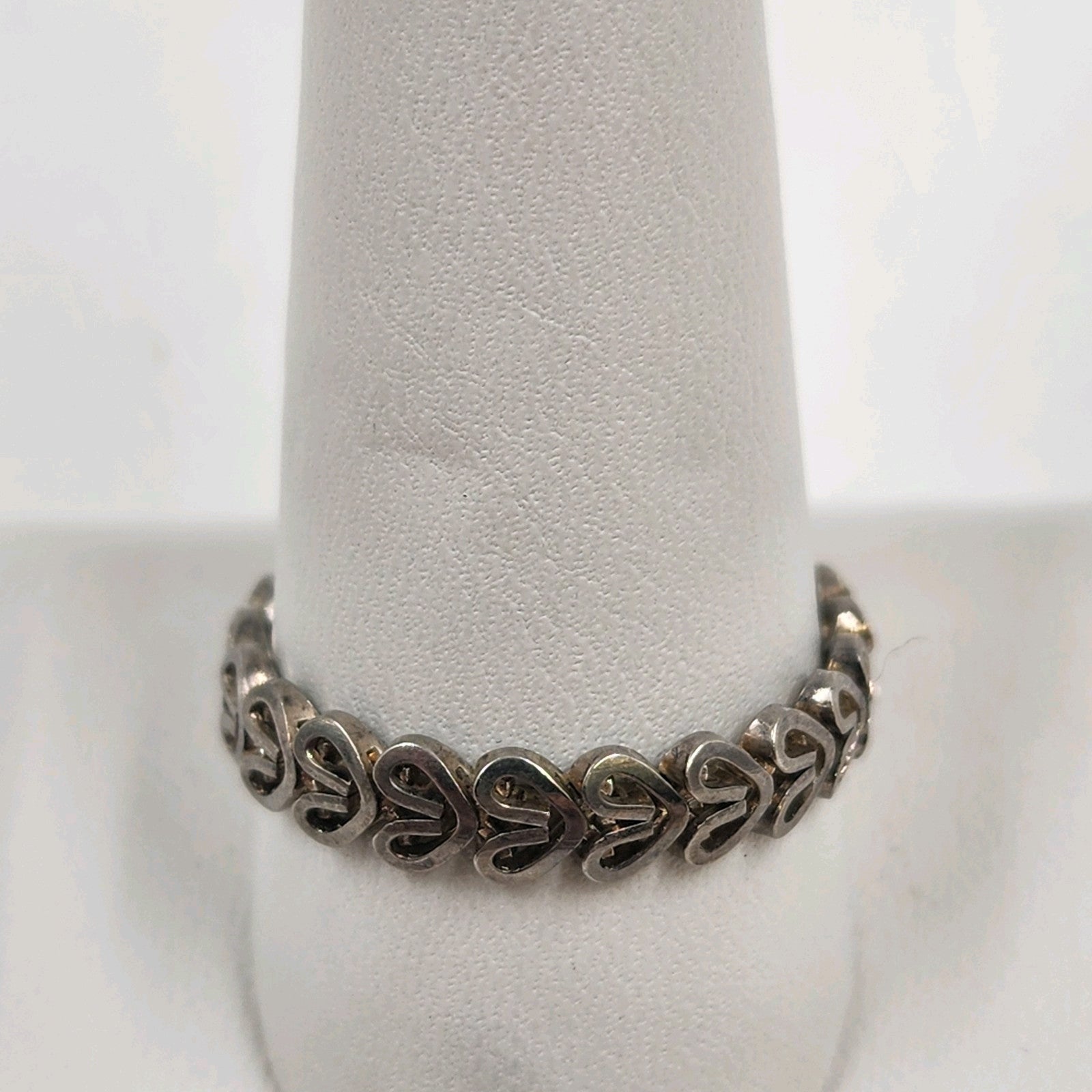 Silver Tone Heart Pattern Ring Vtg Band Style Size 10 Classic Fashion Jewelry