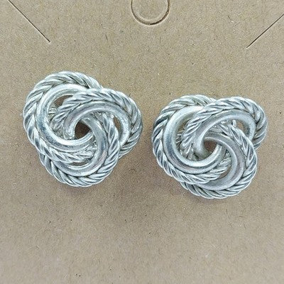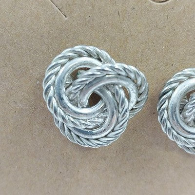 Silver Tone Trinity Knot Swirl Stud Earrings Jewelry Butterfly Closure .75 in
