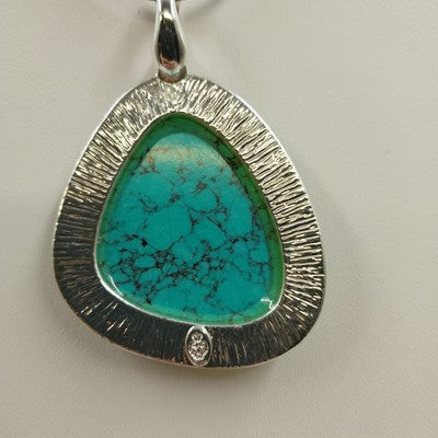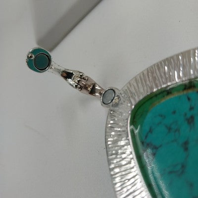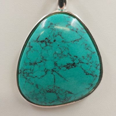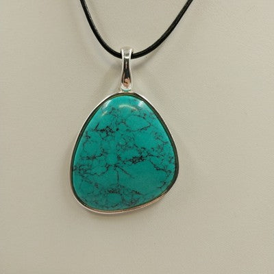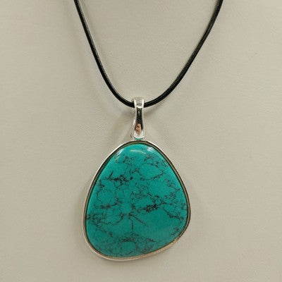 Material: Silver tone, leather cord, and turquoise stone
