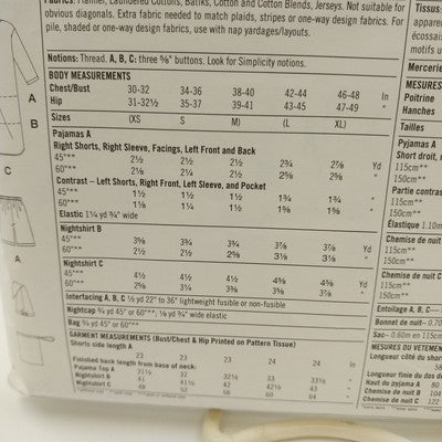 Simplicity 0631 Sewing Pattern Unisex Sleepwear Shirt Shorts Gown Uncut Sz L XL