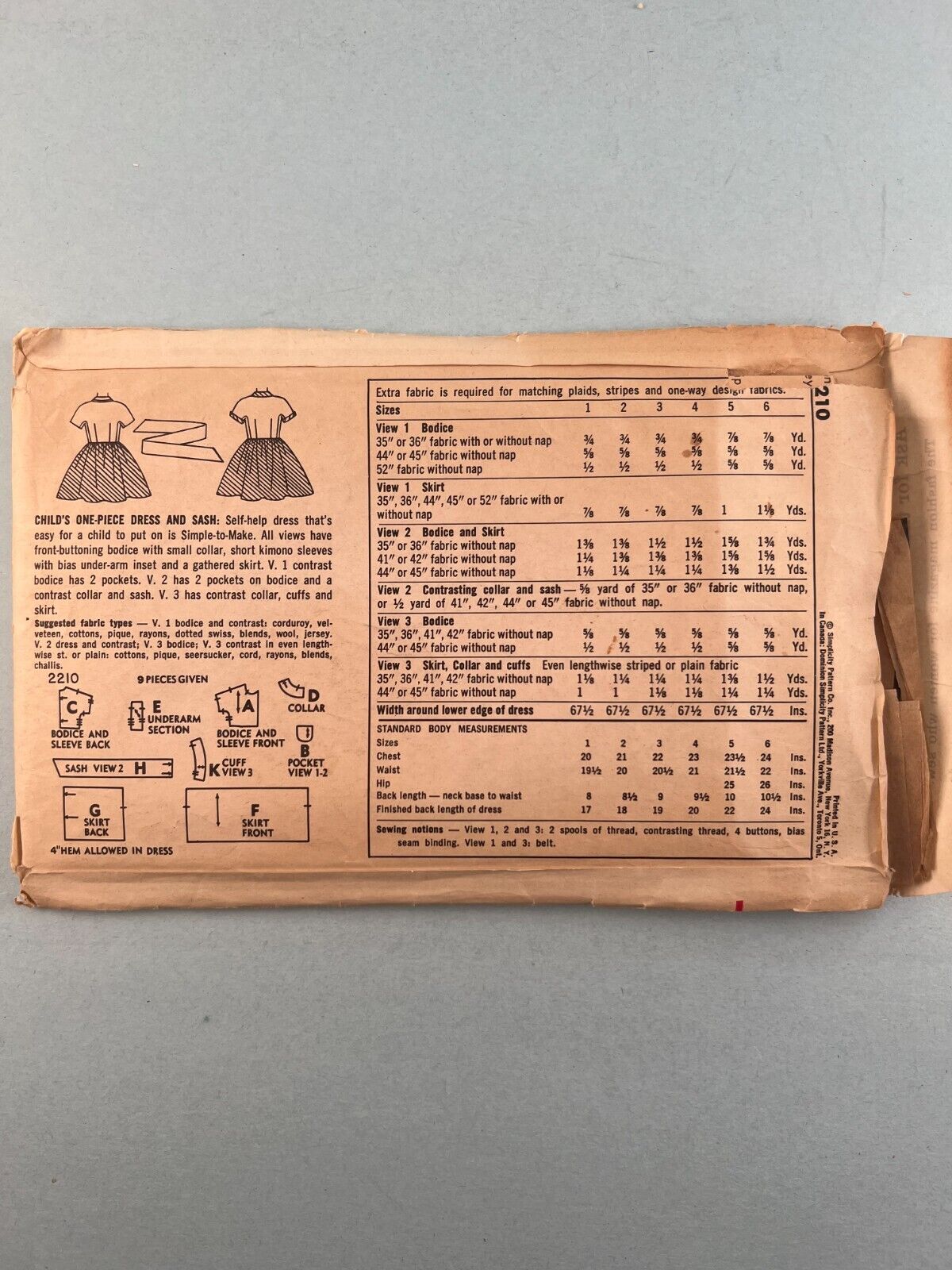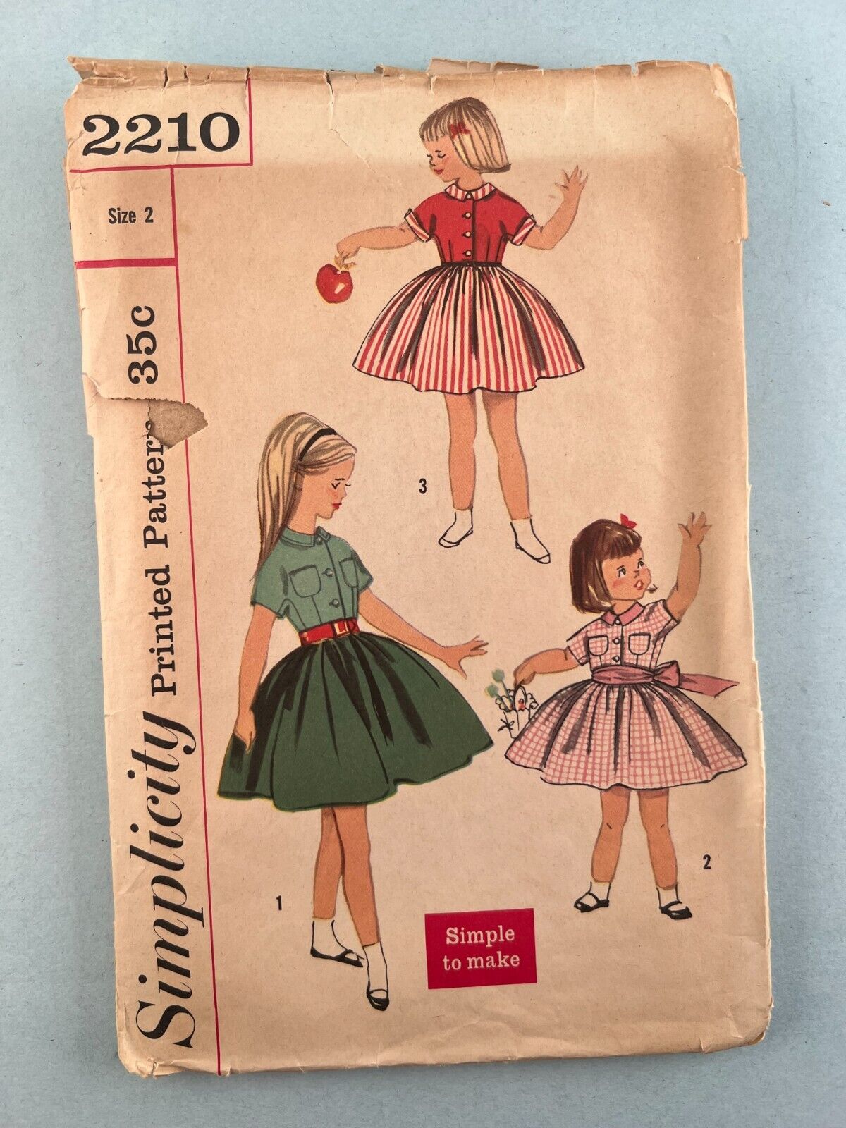 Simplicity 2210 Vintage Sewing Pattern Girls One Piece Dress and Sash Size 2