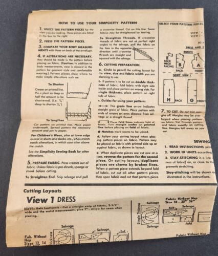 Simplicity 4524 Vintage Sewing Pattern 1960's Misses Dress Complete Cut