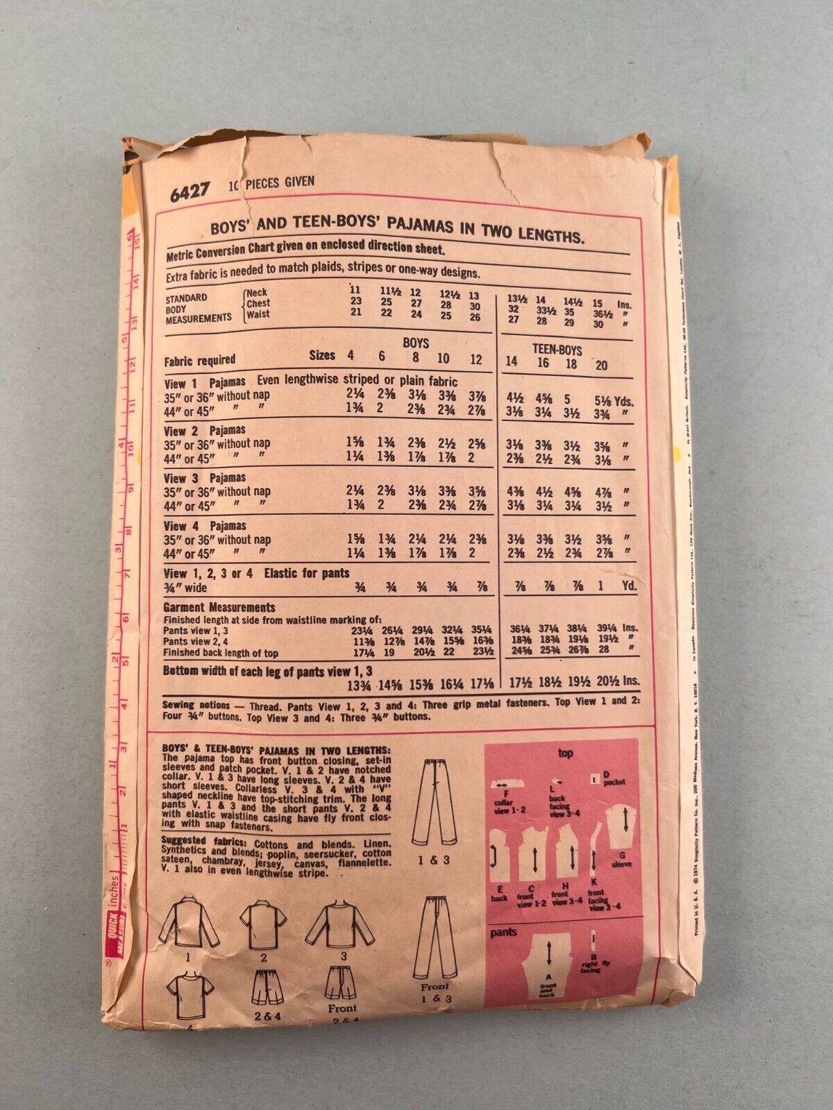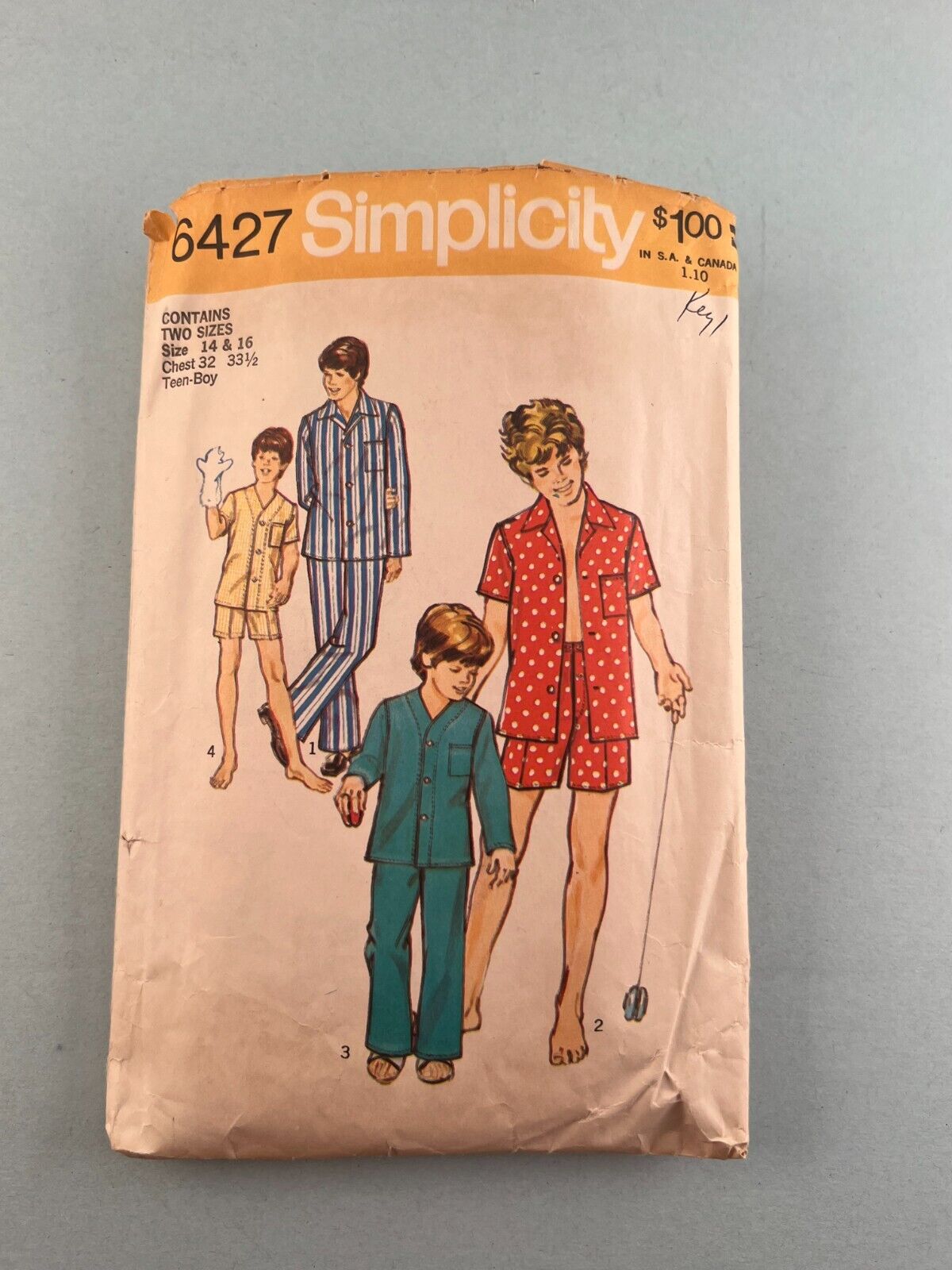 Simplicity 6427 Vintage Sewing Pattern 1974 Teen and Boys Pajamas