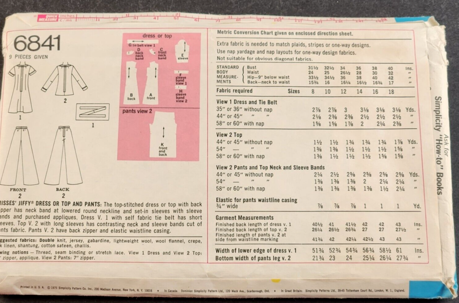 Simplicity 6841 Vintage Sewing Pattern 1975 Misses Jiffy Dress Vintage Size 12