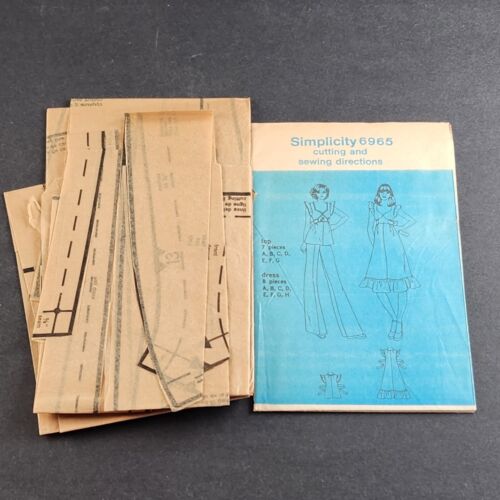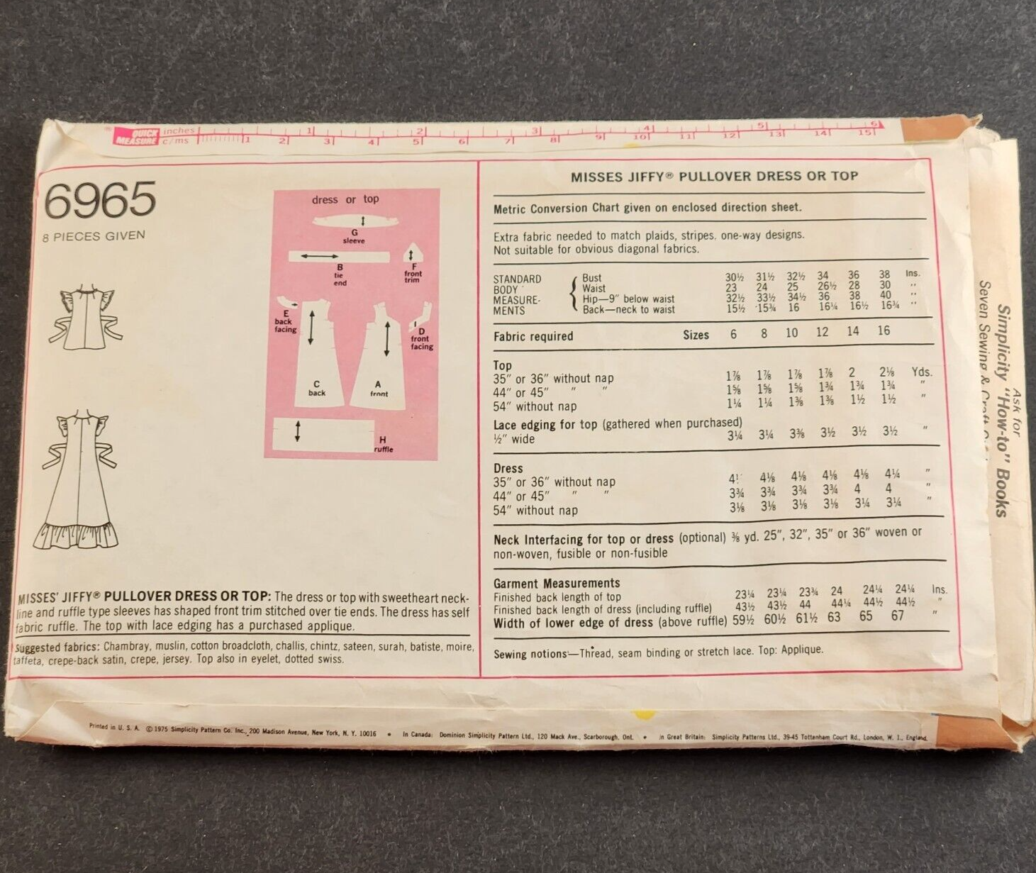 Simplicity 6965 Vintage Sewing Pattern 1975 Misses Pullover Dress or Top Sz 10