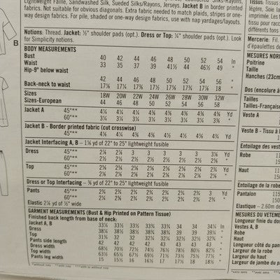 Simplicity 7153 Sewing Pattern Uncut Jacket Dress Top Pants FF 18W-24W