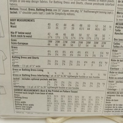 Simplicity 7672 Sewing Pattern Uncut Jacket Dress Sundress Shorts 26W-32W
