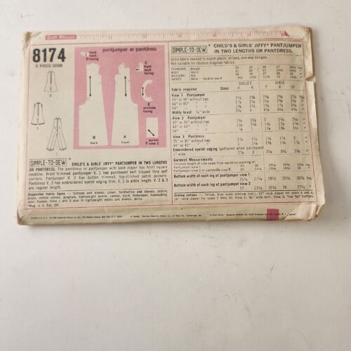 Simplicity 8174 Vintage Sewing Pattern Girls Jiffy Pant-Jumper Pant-Dress Size 7