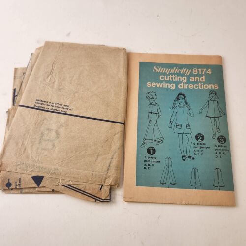 Simplicity 8174 Vintage Sewing Pattern Girls Jiffy Pant-Jumper Pant-Dress 1969
