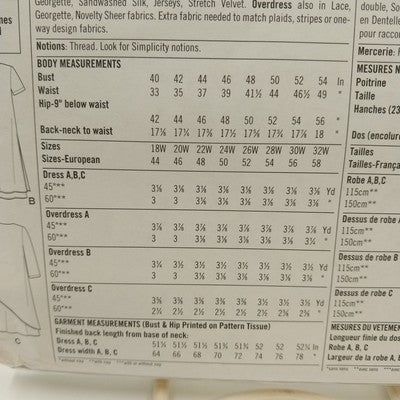 Simplicity 8383 Sewing Pattern Women's Dress Evening Wear Pattern Uncut 26W-32W