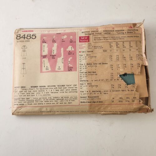 Simplicity 8485 Vintage Sewing Pattern Misses Dress Designer Fashion