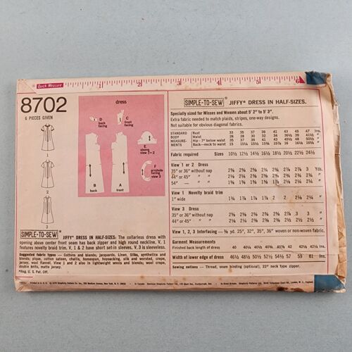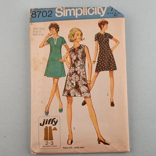 Simplicity 8702 Vintage Sewing Pattern Jiffy Misses Dress in Half-Sizes Size 18½