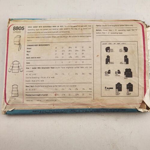 Simplicity 8805 Girls Vintage Sewing Pattern Jacket Vest Hood 70s