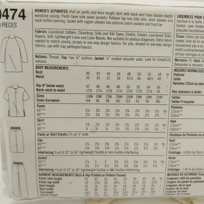Simplicity 9474 Uncut Sewing Pattern 18W-24W Pants Skirt Tunic Top Vintage
