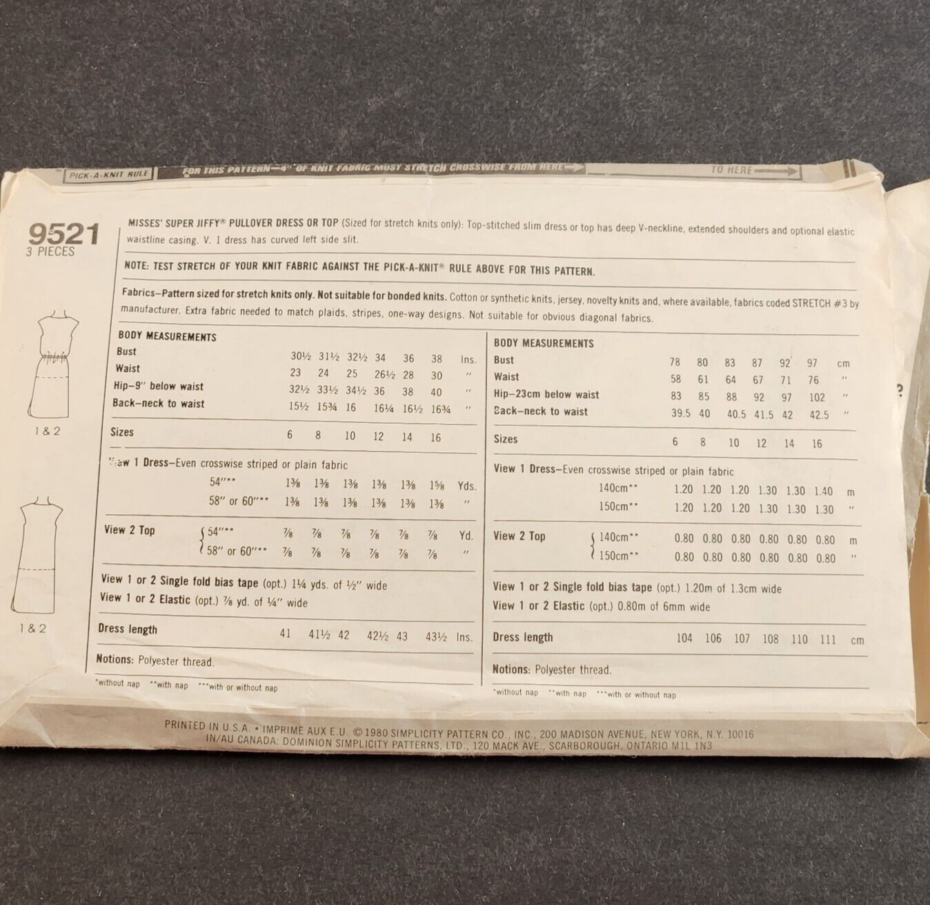 Simplicity 9521 Vintage Sewing Pattern Misses S16 Super Jiffy Pullover Dress Top