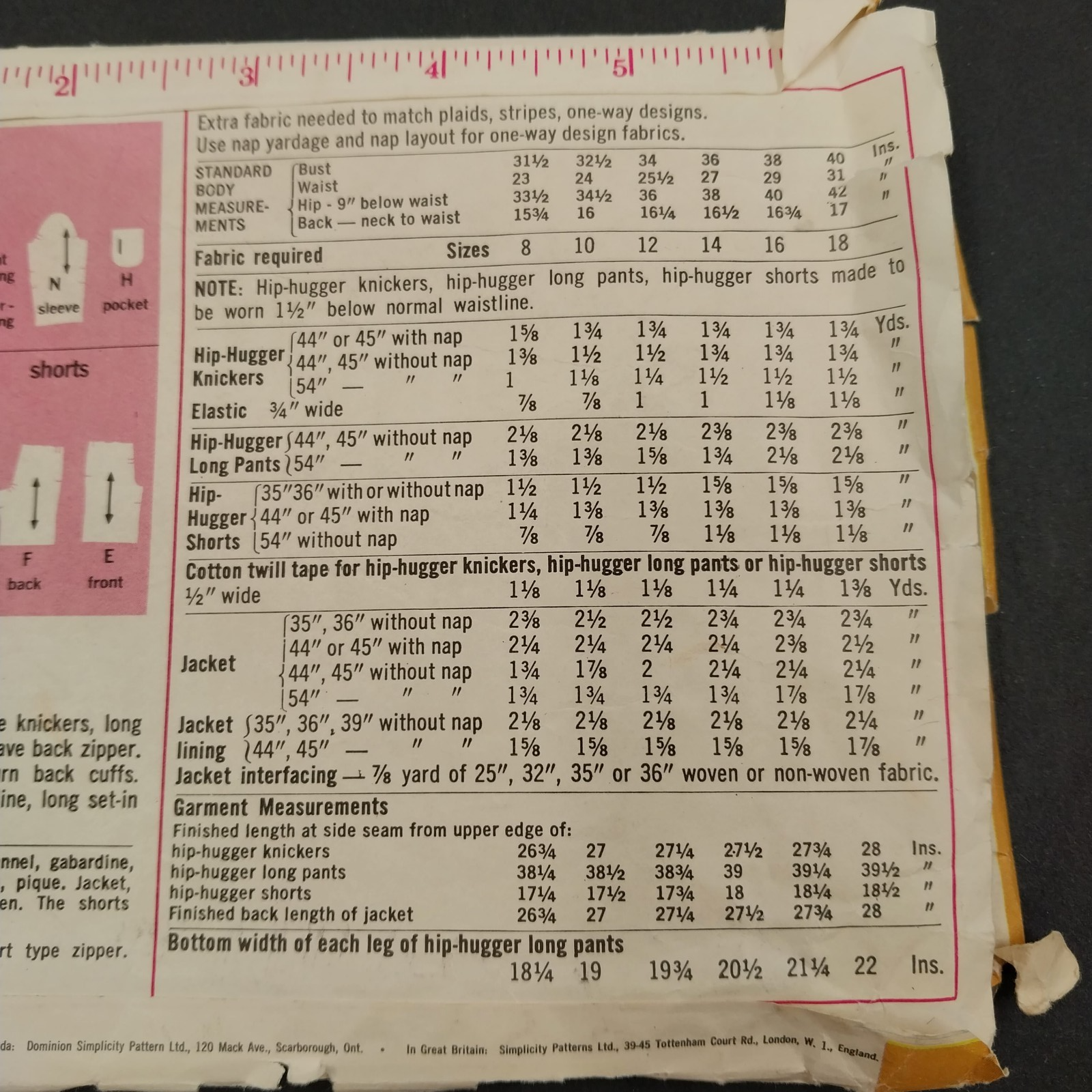 Step into retro style with this vintage Simplicity 9557 sewing pattern featuring trendy hip-hugging pants and a matching jacket. A great choice for those who love fashion with a bold, nostalgic flair.