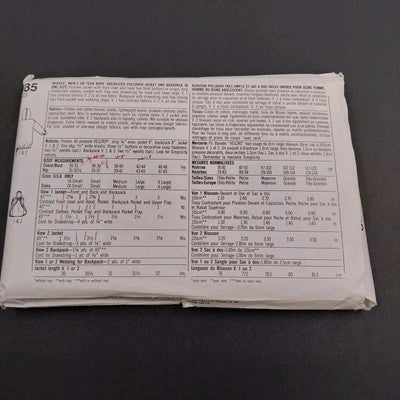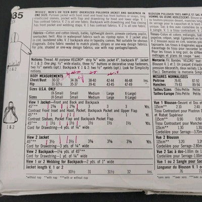 Simplicity 9585 Vintage Sewing Pattern 1990 Men's Oversized Jacket Backpack