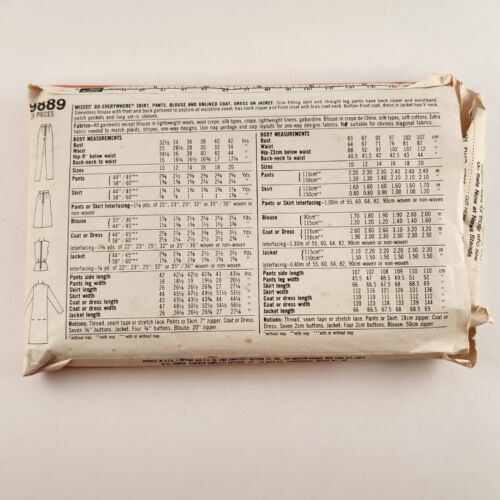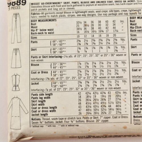 Simplicity 9889 Sewing Pattern Woman's Skirt Pants Blouse Unlined Coat Size 18