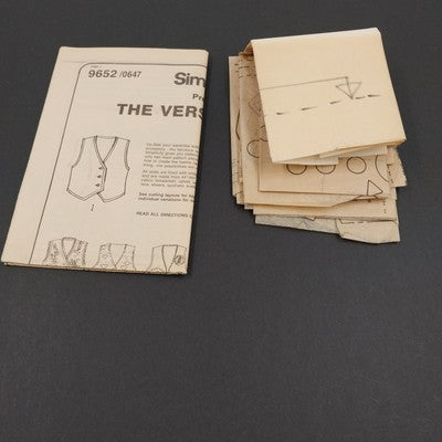 This is a vintage Simplicity Crafts 9652 sewing pattern from the 1990s, designed for making stylish Misses' lined vests.