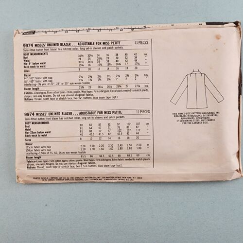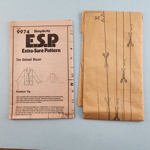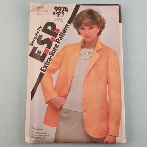 Simplicity ESP 9974 Vintage Sewing Pattern Misses Unlined Blazer Size 16 18 20